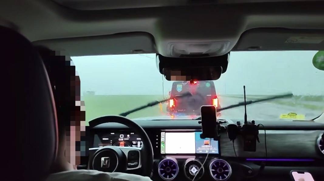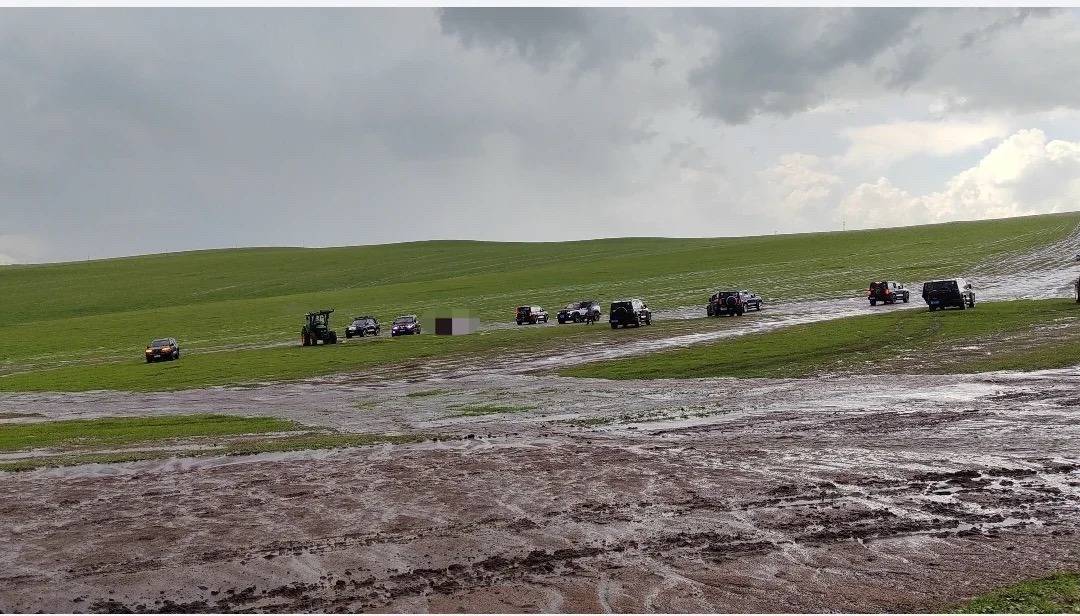 车队穿越草原遇暴雨。受访者供图